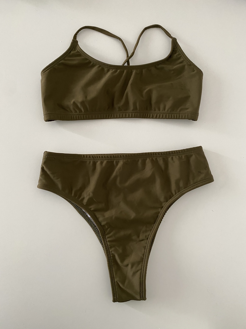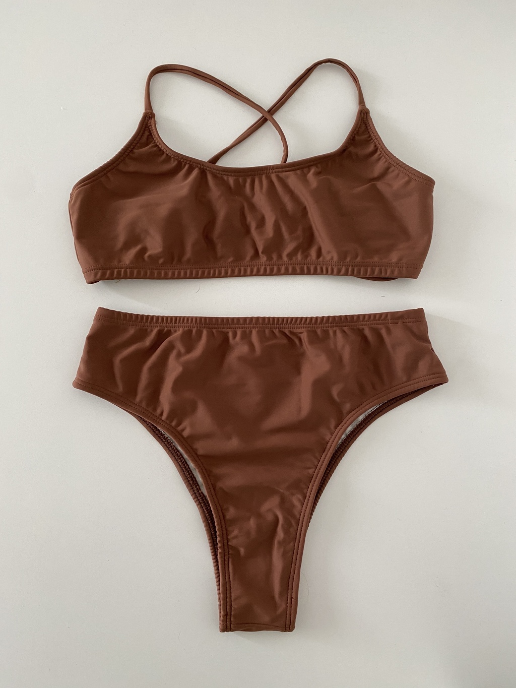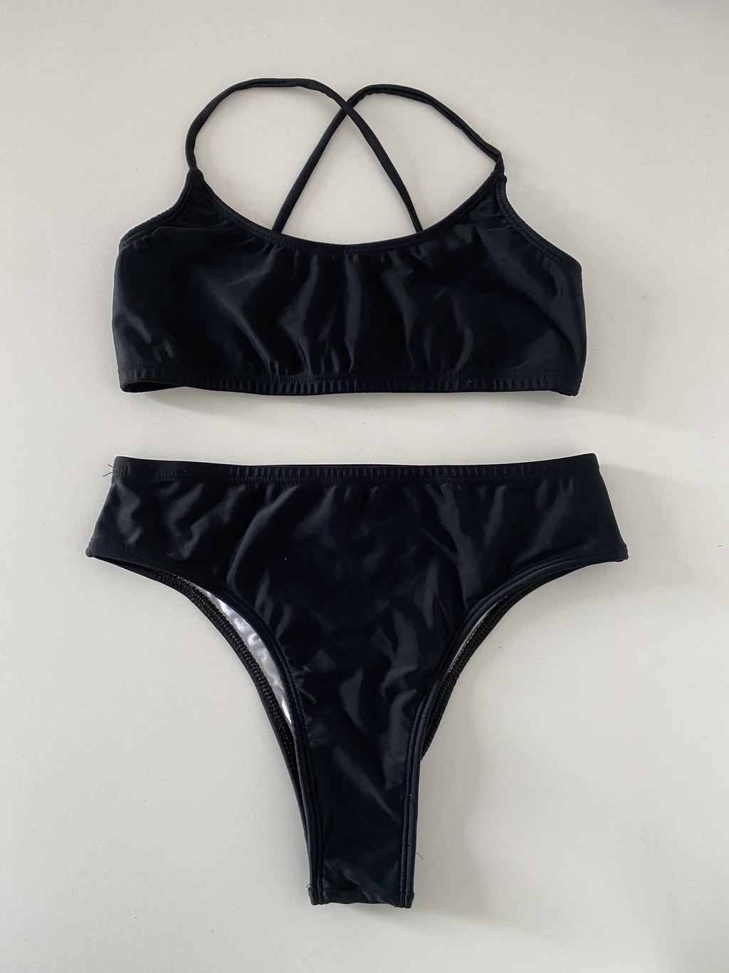 Bikini parte de arriba top con tiras y bombacha tiro alto en semivedetina. Un set de dos piezas confeccionado en LYCRA TRICOT