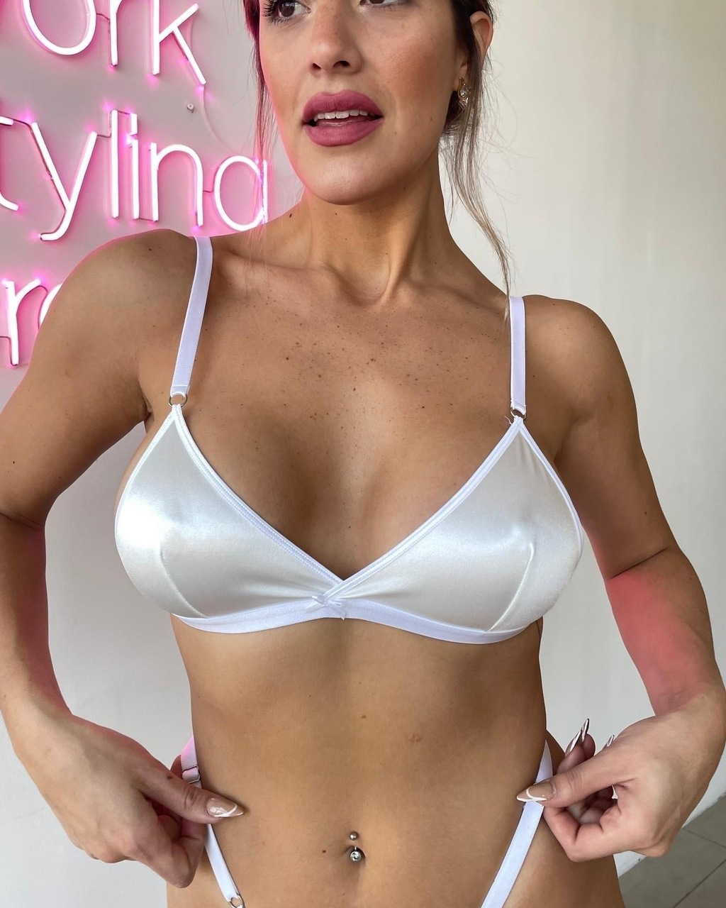 •Corpiño TRIANGULO, con reguladores bretel de 10mm de ancho regulable con elástico y COLALESS con elástico exterior